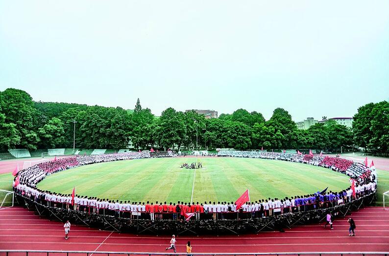 6月5日上午,华中师范大学为2018届本科毕业生拍摄毕业大合影。来自24个学院的4000余名本科毕业生,与学校领导、老师一起,围成近300米大圈,共同定格这一难忘时刻。据介绍,这张霸气毕业照洗印出来可长达8米,还启用了全景亿级像素相机和航拍无人机。这是该校自2014年以来,第5年为本科毕业生拍摄超大“全家福”。