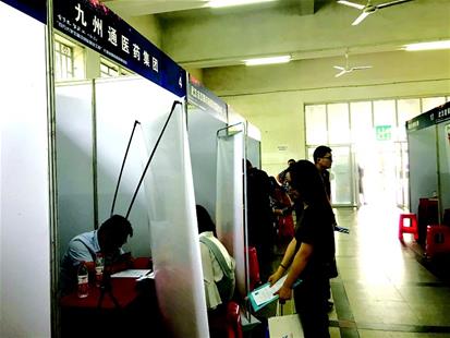 在武汉金牛管业公司的展台上,聚集了不少咨询者,多个岗位年薪在30万元以上,其中“技术领军人才”岗位年薪为60万元至100万元。该公司招聘专员介绍,该岗位为产品研发岗,除了欢迎有丰富经验的社会人才应聘外,对那些理论知识扎实、学历高的在校学生也随时敞开大门。