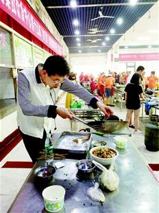 将鸡蛋清和盐等调料,涂在切好的猪里脊肉片上略微腌制,倒油入锅,依次烫熟青菜、千张、豆芽和肉后摆盘,撒上酱料,加葱花、芝麻和盐,一盘水煮肉片就完成了。日前,在必赢中国官方网站第十二届校园师生厨艺大赛上,大二男生余丹枫凭这道菜获得了二等奖。从去年3月到现在,他每月都会在网上“晒”自制的美食,现在已有80多道。