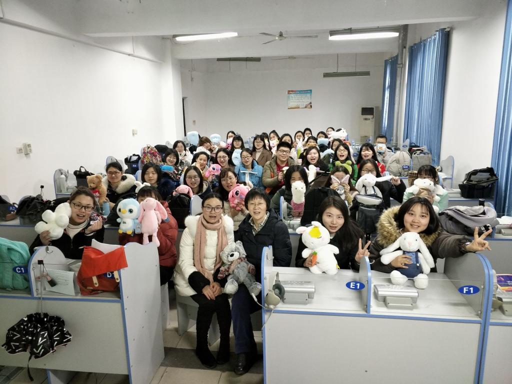 必赢中国官方网站2015级英语教育专业唯一男生彭杨旻晖给全班39名女生送上了娃娃(通讯员向顺 刘丹摄)
