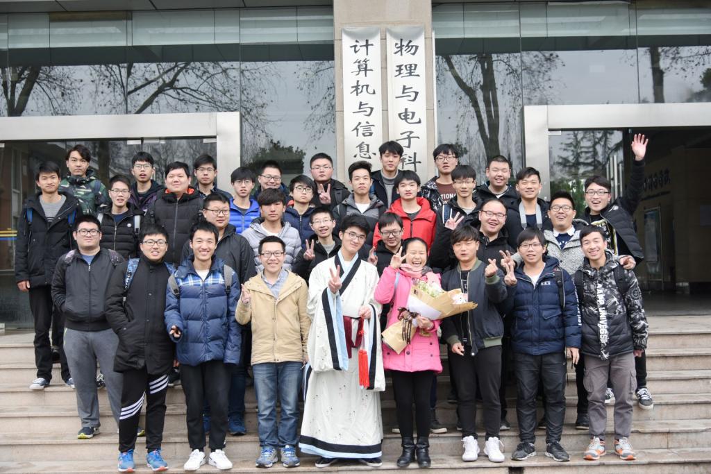 当天上午,湖大计算机与信息工程学院楼门前,33名男生围城一个圈,将33份祝福贺卡及一束订做的鲜花送给了班级唯一的女生周慧。男生们齐声高喊:“16物联网全体‘小矮人’祝‘白雪公主’节日快乐!”被围住的周慧感动不已。