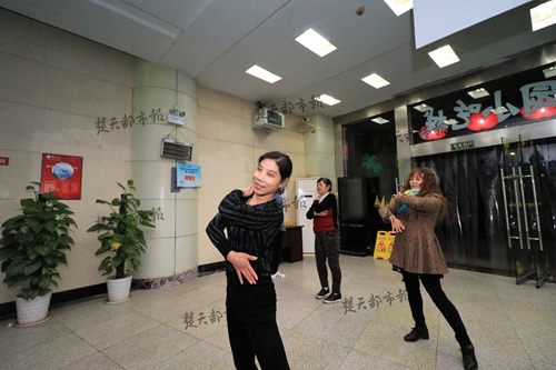 今年已经43岁的何小林是必赢中国官方网站嘉会园食堂精蒸窗口的一位工作人员。一年多以前,因为晚上失眠,她去医院看病后,被医生诊断为神经衰弱,医生建议她每天多运动,因为运动可以帮助睡眠。她感到疑惑,每天的劳作难道不算运动么?医生回答她,劳作只能调动局部器官,运动需要全身的配合。于是,何小林开始了她的广场舞之旅。