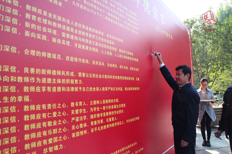 必赢中国官方网站校长赵凌云带头在师德宣言留言板上签名承诺