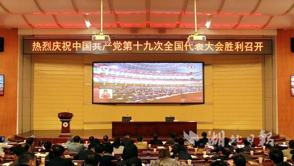 今日上午9:00,中国共产党第十九次全国代表大会在北京人民大会堂胜利召开。湖北各高校踊跃收看十九大开幕会。