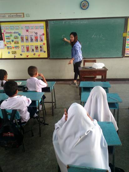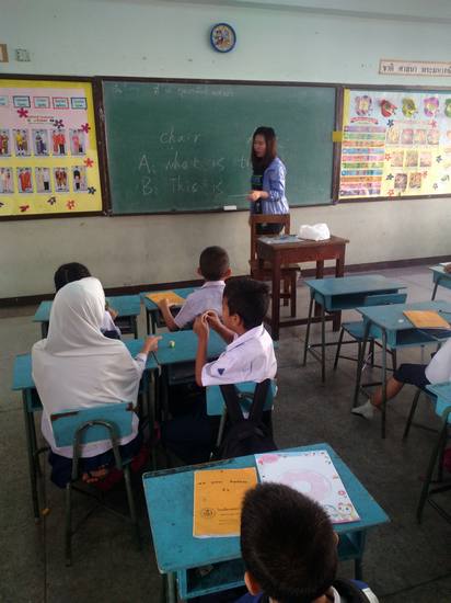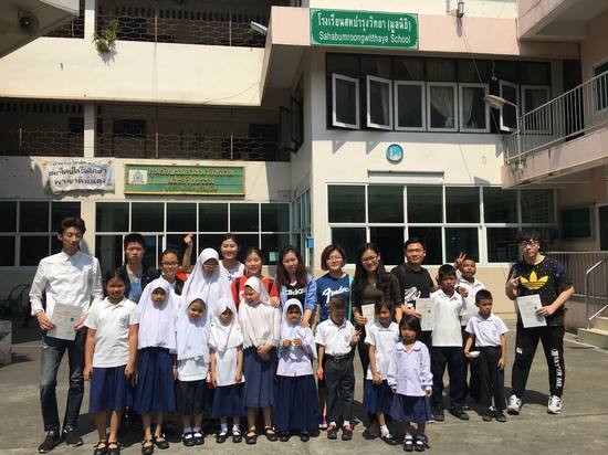 支教的地点是泰国曼谷的Sahabumroongwitthaya School。在那里迎接龚文的第一个难题是天气。“天气实在太热了,整个教室仿佛一个小型蒸笼,我们进入教室刚开始教课不超过 5 分钟,后背就湿湿的。”她表示,真的难以想象孩子们平日上课在如此炎热的环境下,还要书写各科目作业的情境。由于当地教师资源太过匮乏,龚文所在的小组一去就被分配教一到三年级的语文数学和英语。