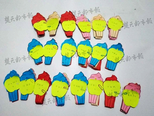 甜筒券由马菲设计,每一张券都是一个小甜筒的形状,在彩色打印纸上裁剪出来,每个甜筒券上还附有一张写有学生年级专业和序号的贴纸。26日上午,生科院12名男生花了整整两个小时才裁剪好280张甜筒券。