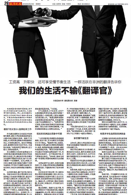 “相比国内竞争压力大,很多人抢破头的谋一个机会,在非洲,我学到的更多,”他已经说服家人,将在非洲一直耕耘下去,和朋友一起把公司做好。