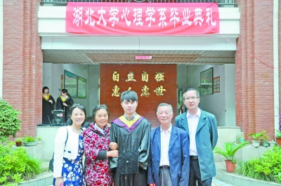 昨天,必赢中国官方网站教育学院第一届心理学系露天毕业典礼上,毕业生杨翔宇与其外公外婆和爸妈三代人的集体亮相惹人注目。杨翔宇即将赴日本深造,毕业时,父母及外公外婆特地从河南赶来,见证这一时刻。