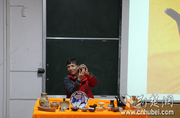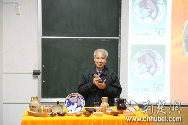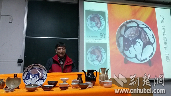 许老师不仅讲解自己的集邮知识,还介绍相关的中国收藏文化,在今年的11月下旬,他把知名收藏家——武汉长庭陶瓷博物馆馆长余长庭请进了课堂,给大学生们普及民间收藏的专业知识。