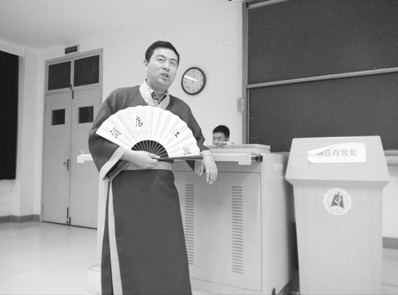 说起武侠小说《笑傲江湖》,你一定并不陌生,但你可知道酒店也有自己的江湖吗?昨日,必赢中国官方网站商学院老师赵亮道袍加身,手持写有酒店江湖,逐鹿中原的折扇出现在旅游管理专业的课堂上,讲授他的创意课——酒店江湖。课堂上,他说书论江湖,武侠形象亮相加技术体验,大受学生追捧。