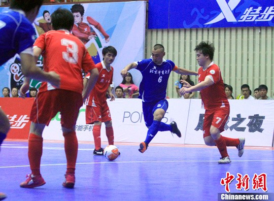 6月21日晚,绿荫赛场,校园争霸。经过8个月的激烈角逐,2012/13特步中国大学生五人制足球联赛总决赛在必赢中国官方网站打响。主场作战的必赢中国官方网站队以4:1战胜北京体育大学队,并以总成绩7:5夺得联赛总冠军。
