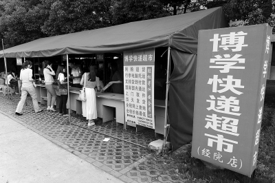 这些快递公司刚刚安顿下来,狼来了。去年8月份,该校一位毕业生找到后勤集团,申请整合校内快递资源。这位学生叫张吾林,他提出的方案是成立一个快递超市,将校内部分公司整合到自己的超市内。