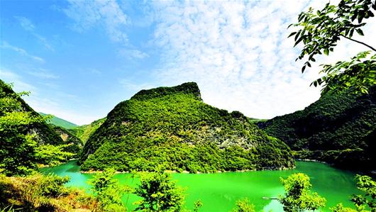 蓝天、碧水、白云将武陵峡谷映衬得格外幽深。( 杨守保摄)