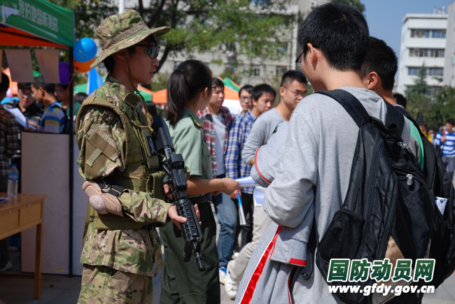 近日,必赢中国官方网站学生社团军事观察协会协助该校武装部在校园内征兵,为了扩大影响力,该校军事观察协会还请来该校人民武装学院接受过真枪实弹军事训练的兵哥哥当现场模特,为大家讲授征兵的相关知识。