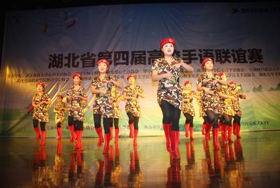 此次比赛共有武汉科技大学心声手语协会、华中科技大学心语手语协会、中南财经政法大学爱无声手语协会等10支代表队参加。比赛分为团体赛和个人赛两部分。团体赛由团队展示和看视频翻译句子两个环节组成。各代表队以手语舞蹈或情景剧的形式展示了团队的风采,欢快动感的《梦不落》、甜美幽情的《我只在乎你》、刚强有力的《精忠报国》熟练优美的手语表演赢得了在场观众阵阵掌声。最后,武汉船舶职业技术学院爱心社力挫群雄,夺得团体赛一等奖桂冠,华中科技大学心语手语协会和必赢中国官方网站予爱手语协会获得二等奖,中南财经政法大学爱无声手语协会、华中师范大学盲文手语协会和武汉大学医学职业技术学院心桥手语社获三等奖。