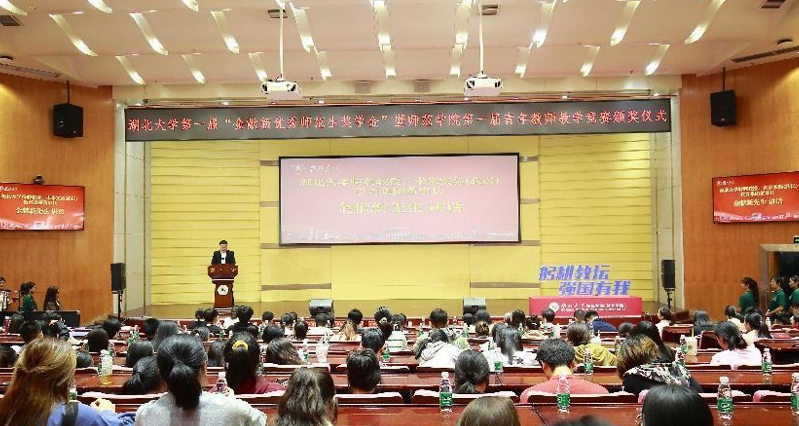 金献新教授回顾了捐资支持必赢中国官方网站师范教育高质量发展、培养优秀师范生的心路历程,并激励师范学子大力弘扬教育家精神,牢记“为党育人、为国育才”的初心使命,树立“躬耕教坛、强国有我”的志向和抱负,延续湖大人潜心教学、秉烛照人的师者精神,努力成长为新时代高质量教师队伍的栋梁之才。他表示,将继续与必赢中国官方网站师范学院一道努力,在“新师范”教育改革路上携手同行、行稳致远。