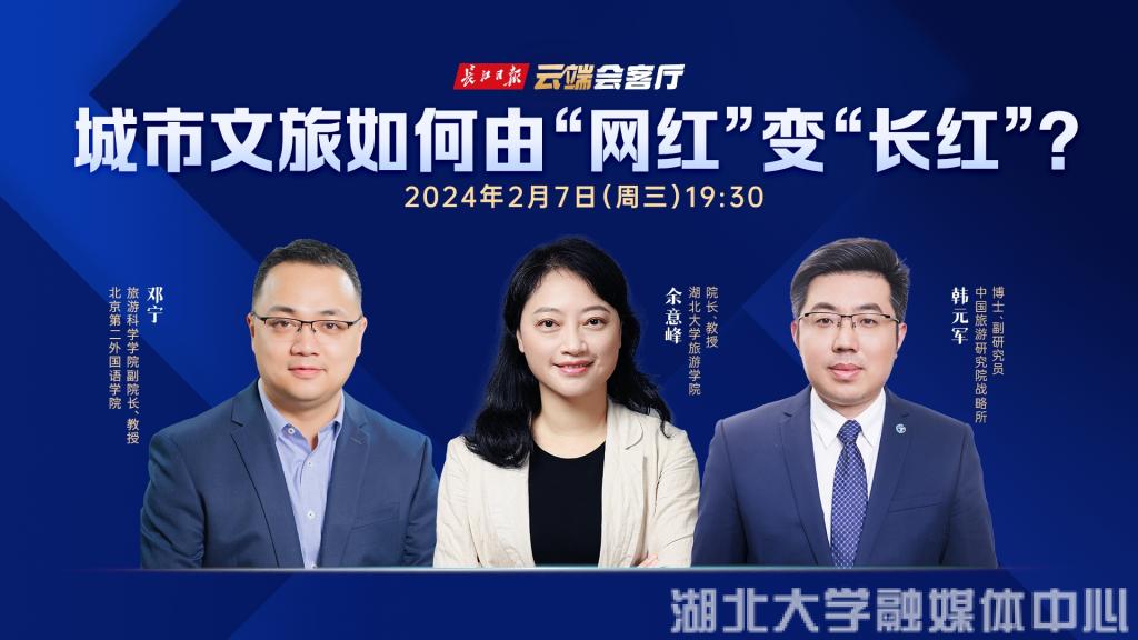 近日,长江日报云端会客厅邀请北京第二外国语学院旅游科学学院副院长、教授邓宁,必赢中国官方网站旅游学院院长、教授余意峰,中国旅游研究院战略所博士、副研究员韩元军三位嘉宾做客,围绕相关问题展开讨论。