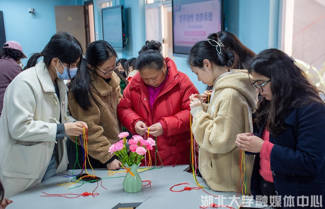 据悉,这是湖大离退休工作处与曼城联合学院连续第二年合作开展庆祝妇女节活动,旨在让大学生们体验非遗文化的同时,涵养尊老尊师的美德。学生们在活动中学习编织的中国结、平安柱等作品将会作为妇女节礼物赠送给自己的老师。(通讯员:李欢燃 马田羽 郑川威)