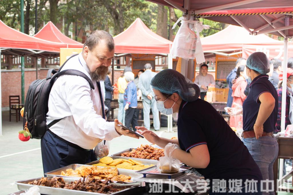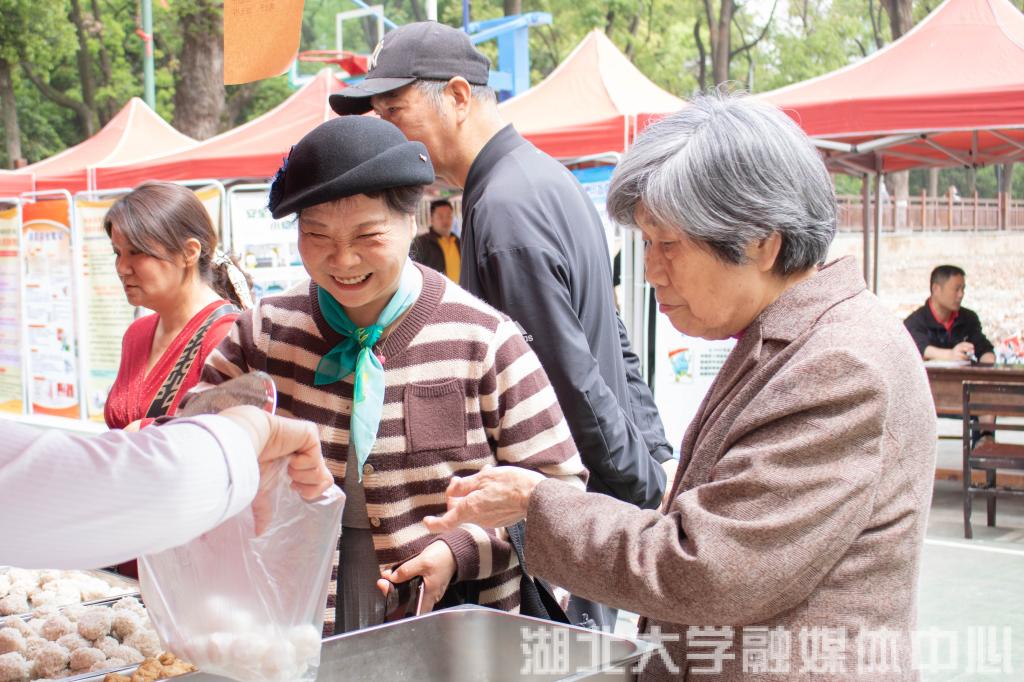 买蔬菜的对着新鲜的小白菜喜不自胜,提着满满一口袋“绿色”心满意足的离开;漫步校园路过的,被湖大幼儿园小朋友们的精致手工立体书吸引眼球,直呼“心里暖暖的”。从湖大安全保卫部退休的范女士,购买了很多肉丸子和煎饼,她开心地说:“学校里买的东西,油和肉是最让人放心的,赶上这个契机,当然要多买点啦。”