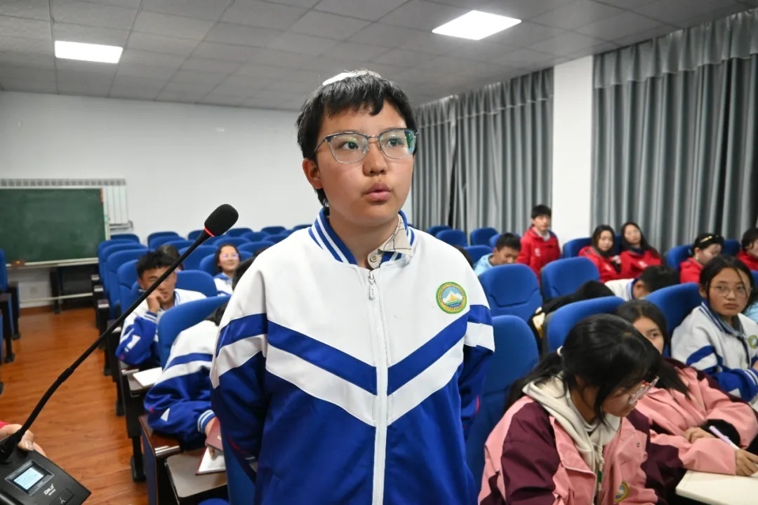 在听取精彩的宣讲后,现场的同学们热情高涨,积极举手参与讨论,纷纷提出自己对环境保护的见解和行动建议。八(1)班益西措姆同学说:“通过李博士的宣讲我了解到了更多环境保护的方式。绿色环保要从点滴做起,创造美好的生活要靠每一个人努力,保护环境就是保护我们赖以生存的家园。”九(1)班卓玛拉宗同学认为,“人与自然应该和谐共生,为做到这一点,每一个中学生要尽到自己的责任。在今后的生活中我将把所学的环保知识转化为实际行动,成为生态文明建设的践行者和倡导者。”现场的青少年用真挚的语言表达了对地球母亲的热爱和保护地球的决心,此起彼伏的发言充满了对环保事业的热爱和对未来的美好憧憬。