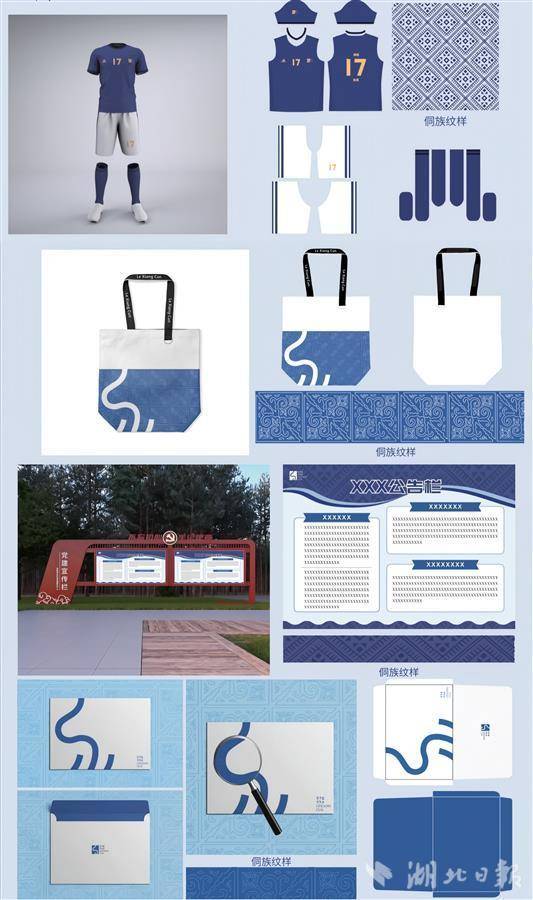 “logo、旗帜和队服还不够,印章、帆布袋、信封、公告栏这些也不能少。”他们从去年七月开始,直至过年前后也在熬夜设计,最终结合乐乡村地域文化特色设计出20套方案,经过小组头脑风暴后,选定5套方案,乐乡村最终选择了包含当地侗族非遗“蓝染”和乐乡村地域元素的方案。