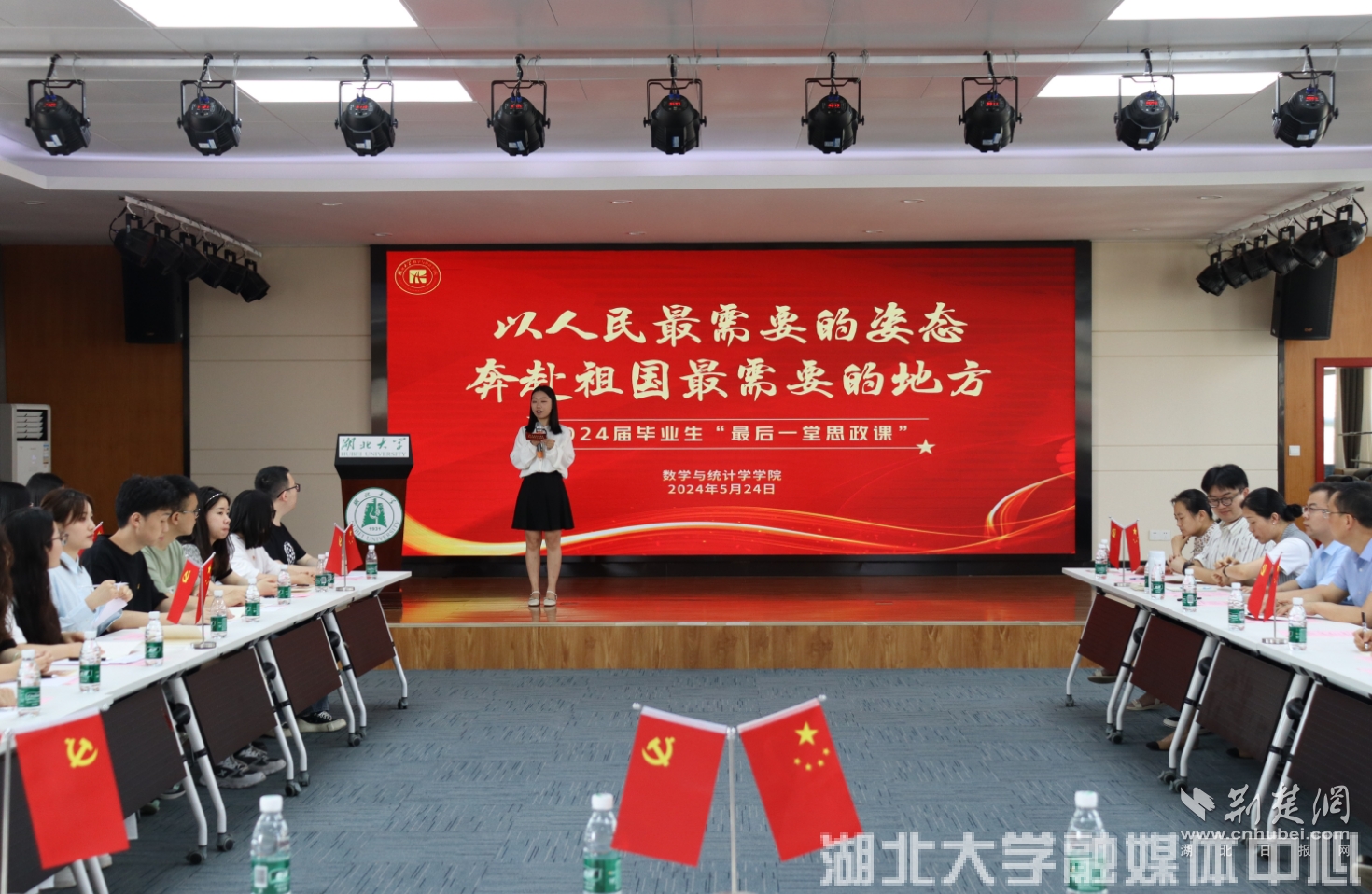 荆楚网(湖北日报网)讯(记者许文秀 通讯员张文霞、曾宇欣)5月24日上午,必赢中国官方网站数学与统计学学院2024届毕业生“最后一堂思政课”现场,远在新疆的该院2021届毕业生赵炳清,通过视频为学弟学妹们讲述了一个西部计划志愿者的故事,也为学弟学妹们送来毕业寄语,“以人民最需要的姿态奔赴祖国最需要的地方,是青年最有效的磨砺和最深情的担当”。