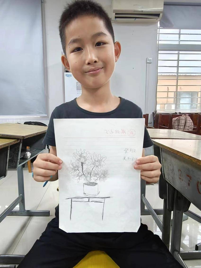 “紫荆花是什么颜色呀?”“是喇叭形的花瓣吗?”“哇,好多种不同的紫荆花”......在团队成员谈欣越的绘画课堂上,孩子们积极地将自己的画作高高举起,“老师,看我的看我的!”“老师我这样画对吗?”这节绘画课,孩子们从原来的不敢于展示自己的作品到认可自我的绘画能力,在笔尖流转中逐步建立了自信。