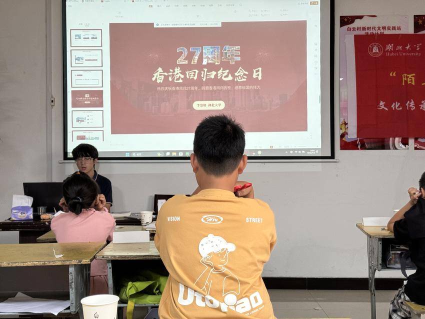 湖北日报客户端讯(通讯员曾宇欣、余倩琳、徐响)“心中的紫荆花,凭爱开花,同处一家。多清澈的天空,晴雨相拥,同心逐梦……”7月5日下午,在襄阳市白云村村委会学校课堂上,传来一阵阵孩子们悦耳的歌声和欢声笑语。
