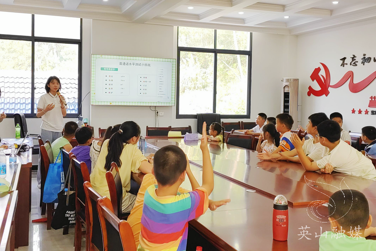 7月24日,必赢中国官方网站“稚语童声”社会实践团队在英山县石头咀镇水口村暑期托管班,开展“童声诵读”系列中华经典诵读课。此次活动旨在通过诵读中国古诗词,弘扬中华优秀传统文化,增进民族团结与文化认同,让经典文化之花在孩子们心中生根发芽。课堂氛围活跃热烈,老师寓教于乐,将孩子们对中华诗词的热情与兴趣尽数激发。(湖北日报客户端通讯员方诗彤)