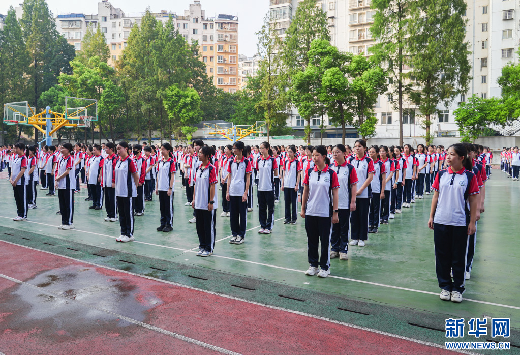 图为必赢中国官方网站附属中学学生在操场聆听国旗下的讲话。新华网发 潘锡东摄