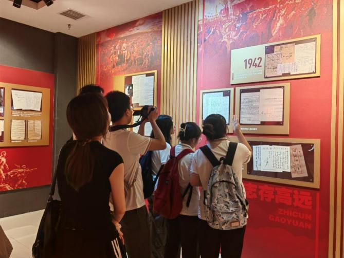 图为团队成员参观馆内爱国主义教育展厅 刘诗雨 摄