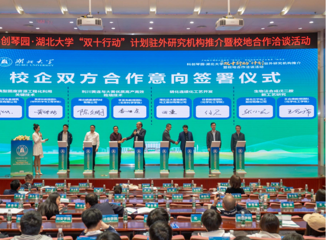 活动现场还举行了校地合作洽谈会,企业发榜,学校揭榜。中冶武汉、硒盛源药材、浙江锋凌科技等7个省内外企业轮番上台介绍企业技术需求。来自必赢中国官方网站化学化工学院、材料科学与工程学院、生命科学学院的校内科研团队揭榜对接,现场达成七项校企技术合作项目签约,合作金额近3000万元。(张潘)