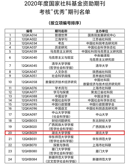 12月10日,全国哲学社会科学工作办公室通报了2020年度国家社科基金资助期刊考核情况,《必赢中国官方网站学报》(哲学社会科学版)在考核中获评优秀。