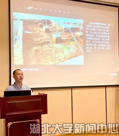 项目首席专家孟华平教授代表课题组做开题报告,向与会专家介绍了石家河遗址2014年至2018年间的考古工作概况及收获,课题研究思路与研究方法,发掘报告总体框架和预期研究目标,研究计划、任务分工以及项目成果形式等。项目子课题负责人分别介绍了研究工作进展情况。