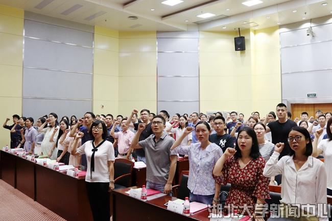 在开班典礼上,全体新进教职工郑重宣誓:投身教育科研事业,做有理想信念、有道德情操、有扎实学识、有仁爱之心的好教师。庄严的誓词激发了新教师的职业神圣感,增强了使命感和责任感。
