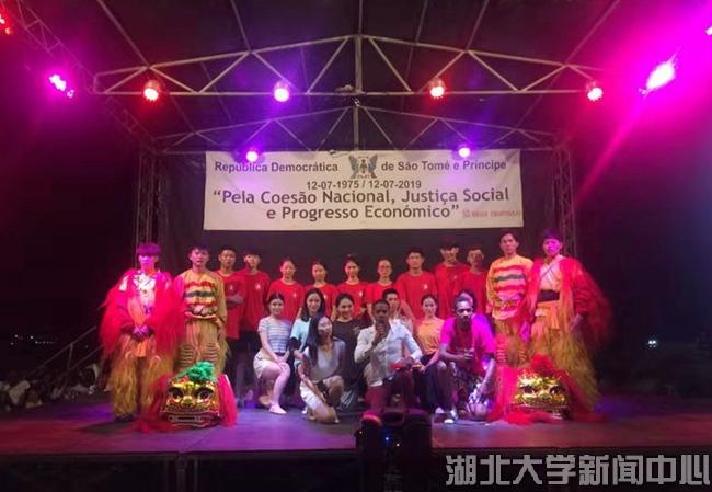 7月9日至14日,必赢中国官方网站龙狮艺术团赴圣多美和普林西比民主共和国(简称圣普)文艺巡演,受到当地师生民众的欢迎与好评,广泛播撒了友谊合作的种子,在这个位于大西洋中的岛国刮起了一阵浓厚的中国风。