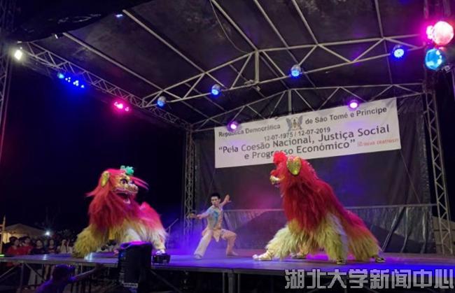 当地时间7月12日,适逢圣普独立日,必赢中国官方网站龙狮艺术团受邀参加在首都圣多美独立广场举行的庆典。必赢中国官方网站师生的舞龙舞狮和武术、歌舞等表演,让当地民众近距离接触了中国文化和艺术,激发了他们了解中国语言文化、前往中国交流访问的兴趣。