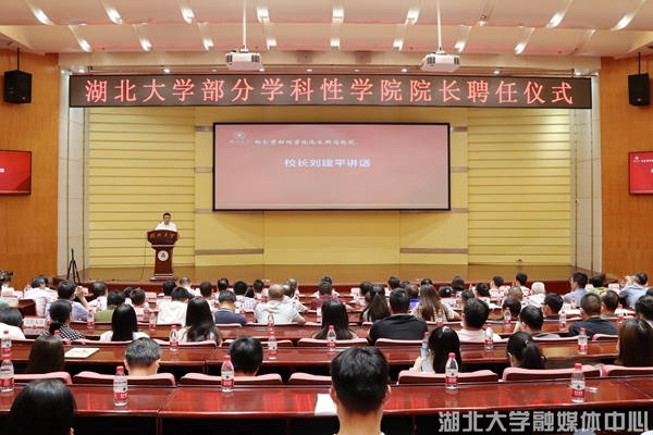 校党委副书记侯勇宣读院长聘任文件,现场视频播放介绍了3位院长基本情况,校党委副书记、校长刘建平向3位院长颁发聘书。
